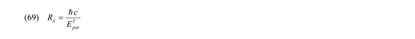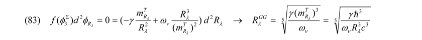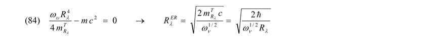 Zu beachten ist außerdem, dass es drei relativistische Grenzbedingungen gibt. Die erstere stellt bekanntermaßen das Planckteilchen mit der Masse mPlanck und den Abmaßen Rplanck als energiereichstes Quant dar. Alle weiteren quantenphysikalischen (gravitativ!) wirkenden Potentiale sind gemäß der ART nicht relativistisch. Neben dem Planckteilchen und den mit Gleichung (70) charakterisierten relativistischen Ansatz der Speziellen Relativitätstheorie (SRT) aus der Unschärferelation heraus, ergibt sich bei den Entropiepotentialen eine relativistische Grenzbedingung, aus welcher sich, wie noch zu diskutieren, ganz diffizile Eigenschaften der Elementarteilchen ableiten lassen können. Diese dritte relativistische Grenze RλER in gebundenen Systemen kommt zustande, wenn man Bewegungs- und Entropiepotentiale gemäß (29) und (30) gleich Null setzt. Abgesehen von der Planck-Energie hat man somit auf einer ganz anderen Ebene einen Zusammenhang der Mikrophysik mit der Allgemeinen Relativitätstheorie (ART) hergestellt: