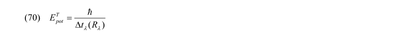 Da es nun einmal so ist, dass die potentielle Energie Epot eines derartigen quantenphysikalischen Systems T nur dann exakt und abschließend beschrieben werden kann, nachdem wegen der Endlichkeit und Konstanz der Lichtgeschwindigkeit c (die Information über die Energie verbreitet sich mit c) eine bestimmte Zeitspanne Δtλ als Funktion von Rλ abgelaufen ist, bekommen die entsprechenden Wellenfunktionen per se einen spezifisch relativistischen Charakter der Einsteinschen Theorie (SRT).