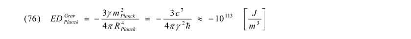Bezüglich der Vakuum-Energiedichte nach Gleichung (75) des Gravitationspotentials für die kleinsten Skalen unseres Universums bedeutet dies einen Wert von: