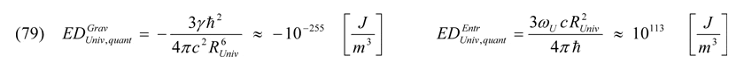 Betrachtet man hingegen RUniv als Potentialtopf Rλ wie in Gleichung (69) und ordnet dem Radius des Universum gemäß der Heisenbergschen Unschärferelation seine quantenphysikalische Masse zu (umgekehrt ergibt diese Transformation keinen Sinn, da man hier Rλ bedeutend kleiner als die Planck-Skala erhalten würde), berechnen sich nun diese Energiedichten: