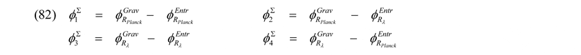 wobei, da immer φΣ = φGrav – φEntr gilt, es nun vier Möglichkeiten gibt, Potentialgrenzgrößen für ein und dieselbe Art virtueller Teilchen-Antiteilchen-Felder darzustellen: